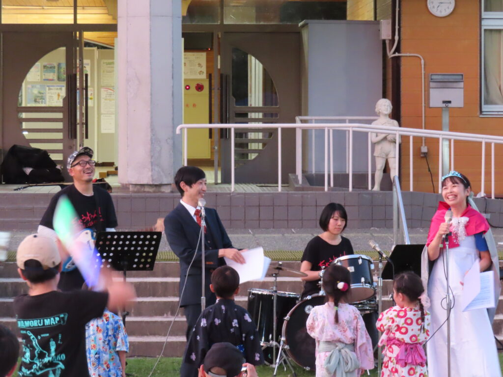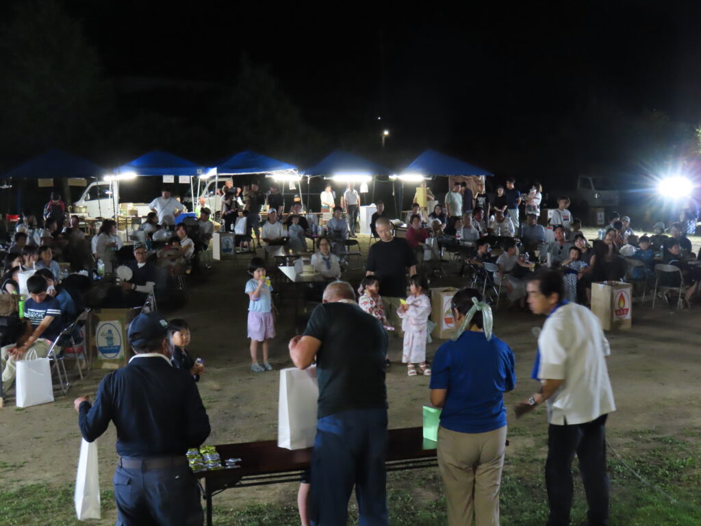 7月26日(土)17時40分~ 母子小学校校庭にて、恒例の「母子っ子夏祭り」を開催しました。会場へは180名を超える方に参加いただき、地域の皆さまを始めそれ以外から参加していただきました皆さまとの交流がはかれたと感じています。